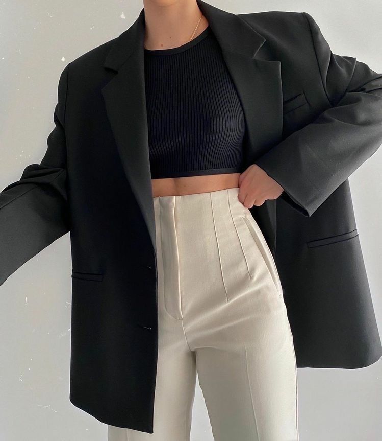 Un essentiel que tout le monde devrait avoir… Il se porte avec tout que ce soit des baskets ou des bottines. J’ai une idée de tenue que je pense faire si j’achète un pantalon fluide. J’associerai le pantalon avec un blazer manches courtes ceinturé avec une grosse ceinture noir plus des bottines blanches et un chignon bas, je penses que ça peut être magnifique! Sinon un ensemble blazer de la même couleur que le pantalon me donne trop envie (oui j’ai un problème avec les ensembles).